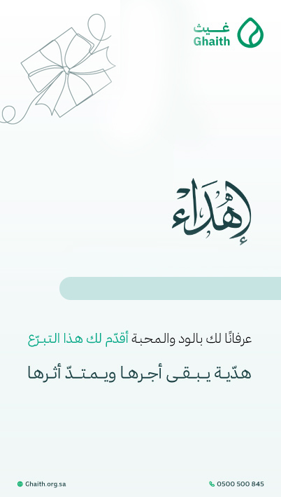 إهد حباً و اجراً للاهل و الاصدقاء و ساهم في اوقاف غيث في مختلف المناسبات الاجتماعية.
