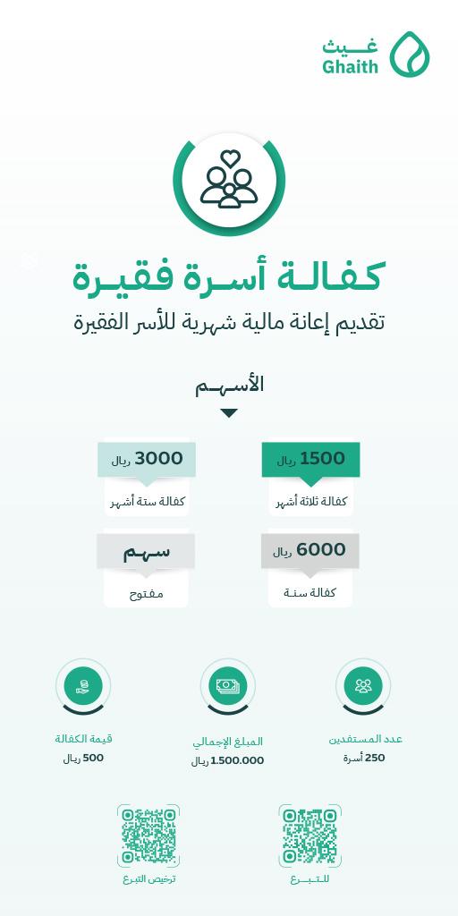عبارة عن كفالة شهرية متمثلة في مساعدات نقدية بهدف التخفيف من معاناة لأسر المحتاجة الذين يعانون من قلة الدخل وعدم القدرة على توفير احتياجات الحياة الأساسية