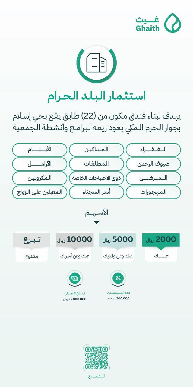 22 طـابـق يـقـع بـحـي إســلام بجـوار الـحـرم الــمكي يـعـود ريـعـه لـبـرامــج وأنـشـطـة الـجـمـعـيـة