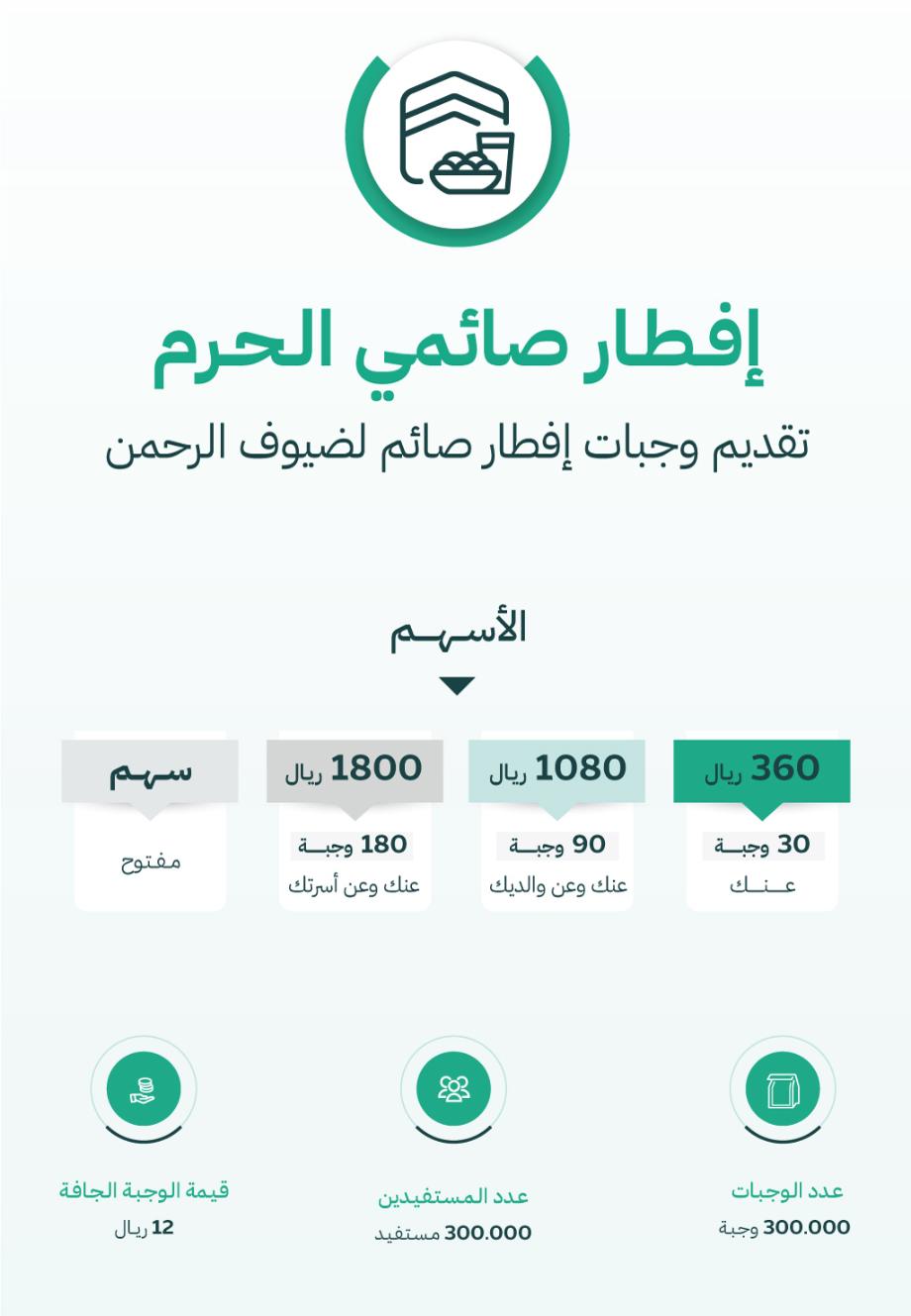 مشروع إفطار صائم في الحرم المكي مشروع يحيي سنة نبوية عظيمة ويعكس جمال التكافل والتراحم بين المسلمين وويسعى هذا المشروع الى تقديم وجبة إفطار صائم يويما خلال شهر رمضان المبارك.